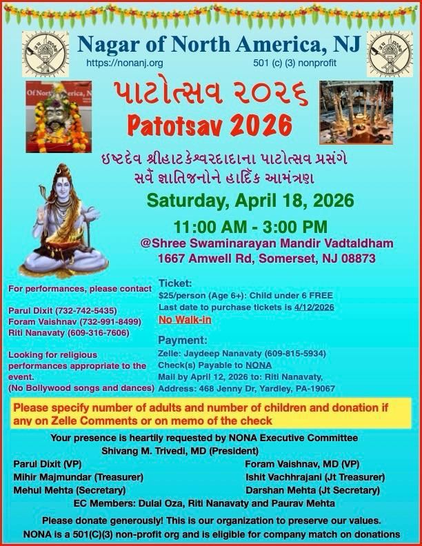 We invite all Nagar families in North America to actively contribute and participate in our activities. Please reach out to us to get added to our community WhatsApp group to get the latest update on our events and activities.